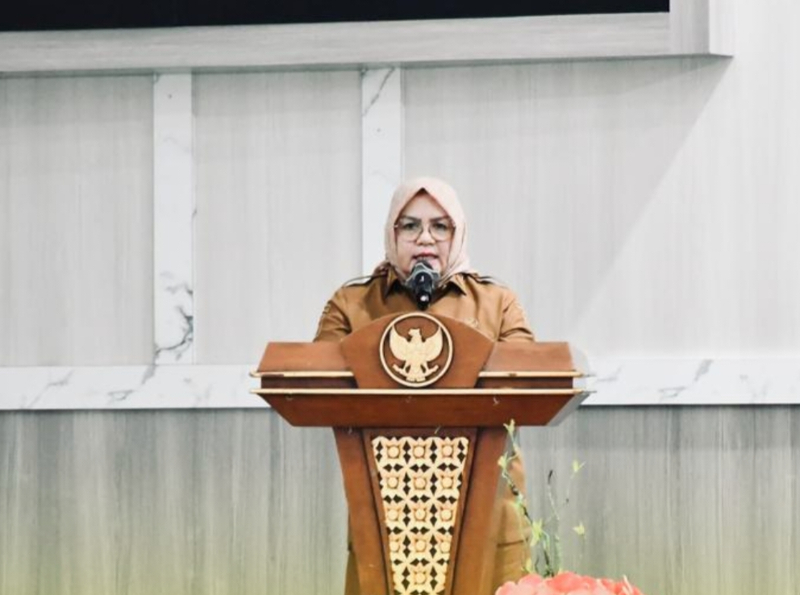 Wabup Surya saat memberikan sambutan pada seremoni penyambutan yang berlangsung di Auditorium Kantor Bupati, Senin (3/11/2025).