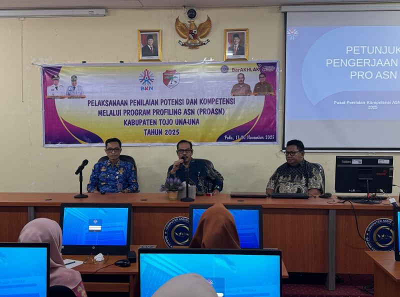PALU – Dalam upaya memperkuat tata kelola pemerintahan dan meningkatkan kualitas sumber daya aparatur, Pemerintah Kabupaten Tojo Una-Una kembali mengambil langkah strategis melalui pelaksanaan penilaian potensi dan kompetensi melalui Program Profiling ASN (PRO ASN), di UPT BKN Palu, Senin (17/11/2025).